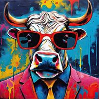 Pop Art Koe 08.50 - een Pop Art Schilderij als echte Blikvanger... Uit onze collectie 'Sharply Dressed Animals'. Dit schilderij krijgt gegarandeerd aandacht...