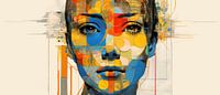 Dit kunstwerk is een portret van een jonge vrouw dat geïnspireerd is op de stijlen van neo dada en pop-art. Het beeld is opgebouwd uit heldere, felle kleuren en lijnen die sterk contrasteren met elkaar. De achtergrond van het portret is gevuld met abstracte vormen en patronen. Deze grafische elementen lijken te zijn uitgesneden uit…