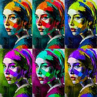 In "Pop Art Parel" heb ik geprobeerd de essentie van popart te vangen door gebruik te maken van opvallende kleurcontrasten en een herhaling van het beeld in verschillende tinten. Deze aanpak benadrukt de tijdloze aantrekkingskracht van het originele werk en voegt een hedendaagse flair toe die het toegankelijk maakt voor een modern publiek. Elke versie van het portret toont een andere kleurencombinatie, wat de veelzijdigheid en de emotionele rijkdom van de afbeelding versterkt.