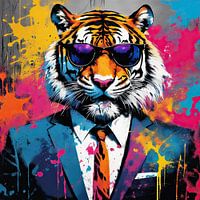 Pop Art Tijger 01.1 - een Pop Art Schilderij als echte Blikvanger... Uit onze collectie 'Sharply Dressed Animals'. Dit schilderij krijgt gegarandeerd aandacht...