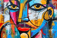 Fascinerend abstract gezicht in de stijl van een pop-art schilderij.