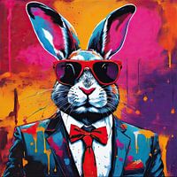 Pop-Art Konijn 02.71 - een Pop Art Schilderij als echte Blikvanger... Uit onze collectie 'Sharply Dressed Animals'. Dit schilderij krijgt gegarandeerd aandacht...