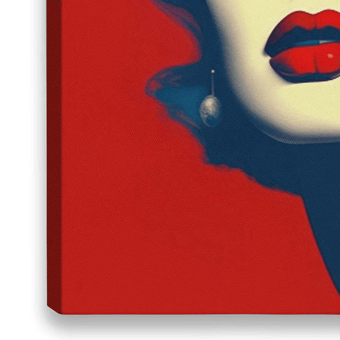 "Pop Lips" is een gedurfd en expressief kunstwerk dat de kenmerkende elementen van popart omarmt. Het centrale element van het werk is een vrouwelijk gezicht, gehuld in een zachte gele tint, dat sterk contrasteert met de opvallende, harde rode achtergrond.