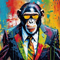 Pop-art Chimp 05.2 - een Pop Art Schilderij als echte Blikvanger... Uit onze collectie 'Sharply Dressed Animals'. Dit schilderij krijgt gegarandeerd aandacht...