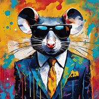 Pop-art Mouse in Blue - een Pop Art Schilderij als echte Blikvanger... Uit onze collectie 'Sharply Dressed Animals'. Dit schilderij krijgt gegarandeerd aandacht...