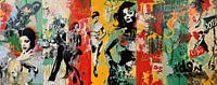 Pop - Dit enerverende stuk urban art is een visueel boeiende collage van gestencilde personages en expressieve verfspatten. Elementen van graffiti en pop-art floreren naast iconische gezichten en typografie, verenigd in een kleurenpalet dat knalt van het doek met rode, gele en groene tinten.