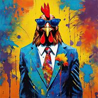 PopArt Kip 05.96 - een Pop Art Schilderij als echte Blikvanger... Uit onze collectie 'Sharply Dressed Animals'. Dit schilderij krijgt gegarandeerd aandacht...