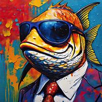 PopArt Vis 02.58 - een Pop Art Schilderij als echte Blikvanger... Uit onze collectie 'Sharply Dressed Animals'. Dit schilderij krijgt gegarandeerd aandacht...