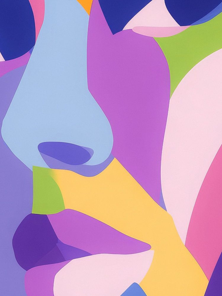 Dit expressieve popart-portret vangt een vrouwen gezicht in opvallende, abstracte kleurvlakken die samen een speelse en moderne compositie vormen. De felle tinten en strakke lijnen geven het kunstwerk een eigentijdse, energieke uitstraling.