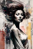 Popart portret gecombineerd met collage, woonstijl vintage. Zwart-wit gecombineerd met gekleurde delen maken van dit werk een bijzonder boeiend geheel. Mooi op alle materialen en in alle afmetingen!
