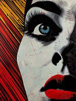 Een coole popart poster van een hippe, kleurrijke vrouw spat van het doek met levendige tinten en dynamische vormen. Haar haar is in heldere kleuren zoals roze, blauw en paars weergegeven, terwijl haar make-up gedurfde lijnen en contrasterende kleuren bevat. De achtergrond is een explosie van abstracte patronen en felle kleuren die de energie en levendigheid van de vrouw benadrukken. Ze draagt een stijlvolle zonnebril en opvallende accessoires die haar trendy uitstraling versterken. De combinatie van scherpe contouren en speelse kleurvlakken maakt de poster tot een eyecatcher, die de essentie van moderne, stedelijke coolness vastlegt en een gevoel van creativiteit en vrijheid uitstraalt.