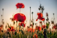 Een klaprozen veld bij zonsondergang in Leest bij Mechelen