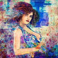 De inspiratie kwam van een portret wat ik op internet zag. Het was een zacht en lief portret van een meisje gecombineerd met wat abstracte vormen. Het werk wat me erg aansprak bleek door kunstmatige intelligent gemaakt.