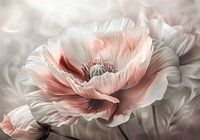 Close-up van een papaverbloem in zachte crème en zalmkleur.