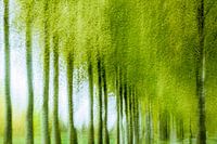 Populieren, Bomen in een typische Nederlandse laan maar dan abstract weergegeven door middel van dubbele belichting in de camera.