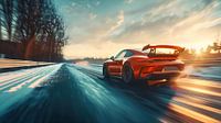 In een cinematografische weergave komt de Porsche 911 GT3 tot leven als een symbool van pure snelheid en precisie. Het gestroomlijnde silhouet snijdt door de lucht terwijl de krachtige motor een diepe brul laat horen. Het glanzende lakwerk vangt het licht, terwijl de koplampen als fonkelende juwelen schijnen. Deze icoon van de sportauto's staat klaar om de weg te veroveren met zijn compromisloze prestaties en verbluffende esthetiek.