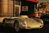 Porsche 550 bij een oud benzinestation van Jan Keteleer