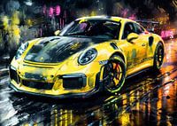 Dit aquarel neonschilderij vangt de Porsche 911 GT3 RS met levendige energie, waarbij vloeiende penseelstreken en gloeiende tinten worden gebruikt om de snelheid en vorm te benadrukken. De brede houding van de auto, de achtervleugel en de gebeeldhouwde lijnen schitteren in elektrische tinten. De GT3 RS wordt aangedreven door een 4.0L flat-six-motor met meer dan 500 pk en haalt 0-100 km/u in ongeveer 3 seconden. Het kunstwerk weerspiegelt zowel de aerodynamische schoonheid als de rauwe circuitprestaties in een gedurfde, expressieve stijl.