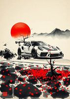 Porsche 911 GT3 RS Rood Zon- en Kersenbloesemlandschap