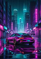 Dit kunstwerk verbeeldt de Porsche 911 GT3 RS in een gloeiende synthwavewereld, waar neonroosters zich uitstrekken over de horizon en retro-futuristische lichten de scène doen ontvlammen. Het silhouet van de auto steekt fel af tegen de achtergrond, de strakke lijnen worden versterkt door de lichtgevende energie van het op de jaren 80 geïnspireerde palet. Schilderachtige texturen versterken de metallic contouren en geven de indruk van snelheid bevroren in een elektrisch droomlandschap. Het resultaat is een werk dat zowel beweging als stilte vastlegt en de kijker onderdompelt in een filmische neonatmosfeer.