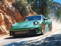 Groene Porsche GT3 RS, getekend in schetskleuren, pulseert met pure race‑energie. Strakke, aerodynamische lijnen snijden door de lucht, terwijl de glanzende lak reflecties vangt. Een zinderende flat‑six, lichtgewicht chassis en race‑geoptimaliseerde achtervleugel zorgen voor ongekende grip. Carbon‑details, felrode velgen en een cockpit vol digitale displays beloven ultieme controle. Deze schets vangt snelheid, passie en ongeëvenaarde sportiviteit op de weg nu.