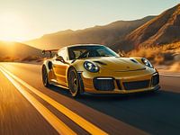 Deze A.I. gecreëerde abstracte foto van een gele Porsche 911 GT3 RS spreekt elke verbeelding van deze krachtige auto die mooi uitgebeeld is. Als auto liefhebber een zeer gave plaat om aan de muur te hebben hangen.