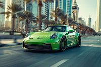 De Porsche 911 GT3 RS is een adembenemende verschijning, met een gestroomlijnde carrosserie die kracht en elegantie uitstraalt. Zijn felgekleurde lak, vaak in levendig oranje of groen, accentueert de agressieve lijnen en luchtinlaten. De brede achtervleugel en uitgesproken aerodynamische details benadrukken zijn racestamboom. Binnenin biedt het interieur een combinatie van luxe en sportiviteit, met kuipstoelen en hoogwaardige materialen. Onder de motorkap ligt een brullende motor, klaar om ongekende prestaties te leveren. Dit meesterwerk van techniek en design is een droom voor elke autoliefhebber.
