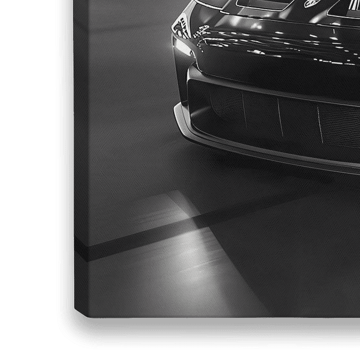 Op de zwart-wit foto straalt een Porsche 911 GT3 pure kracht en elegantie uit. De gestroomlijnde carrosserie, met zijn agressieve lijnen en aerodynamische vormen, komt scherp naar voren. De grote achtervleugel en brede luchtinlaten benadrukken zijn sportieve aard. De glimmende velgen en het iconische Porsche-embleem voegen een vleugje…