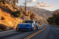 Een Porsche 911 GT3 snelt door het uitgestrekte Amerikaanse landschap, langs de eindeloze rechte wegen van de woestijn in het zuidwesten, waar rode rotsformaties en cactussen de horizon domineren. De glimmende sportwagen trekt stof op terwijl hij door verlaten highways scheurt, met zijn motor die diep en krachtig brult. Onder de open…