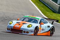 Porsche 911 RSR GTE racewagen van Gulf Racing rijdt in La Source Hairpin tijdens de zes uur van 2016 in Spa Francorchamps.