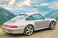 Porsche 911 generatie 993 geparkeerd aan de kant van de weg op de Timmelsjoch bergpas in de Oostenrijkse Alpen.