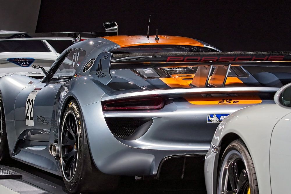 Wagen in race trim ingezet als pace car in races. Opname gemaakt in Porsche museum Stuttgart.