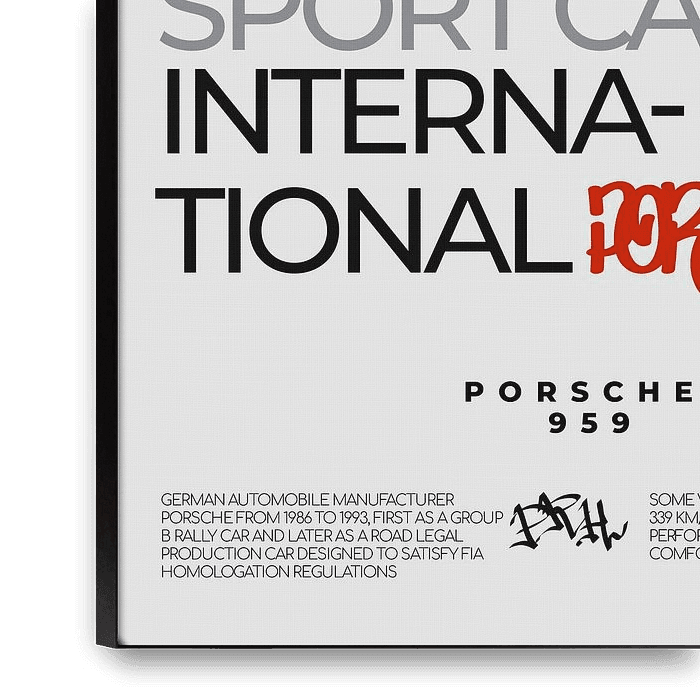 Koop de illustratie Porsche 959 van Ali Firdaus als print op canvas, aluminium dibond, (ingelijste) fotoprint, behang en ArtFrame. Voor jou op maat geprint in Fine-Art kwaliteit.