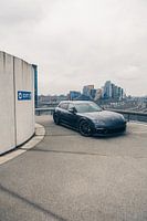 De iconische Porsche Panamera 4S op een parkeerdek in Amsterdam. Een leuke dag rijden eindigt in een fotoshoot in Amsterdam, de hoofdstad van Nederland.