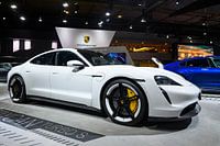 Porsche Taycan Turbo S volledig elektrisch aangedreven luxeauto. De Taycan is uitgerust met een batterij-elektrische aandrijving van permanente-magnetische synchrone motoren op de assen, waardoor de auto vierwielaandrijving heeft. Alhoewel de auto Turbo S heet, is hij niet voorzien van een Turbo.