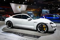 Porsche Taycan Turbo S volledig elektrisch aangedreven luxeauto. De Taycan is uitgerust met een batterij-elektrische aandrijving van permanente-magnetische synchrone motoren op de assen, waardoor de auto vierwielaandrijving heeft. Alhoewel de auto Turbo S heet, is hij niet voorzien van een Turbo.