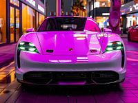 De plaat vangt het moment van anticipatie, waarin de Taycan lijkt te wachten om van de muur te springen en de weg te veroveren. Dit beeld is niet alleen een viering van Porsche's toewijding aan elektrische mobiliteit, maar ook een eerbetoon aan de tijdloze esthetiek en prestaties die Porsche heeft gedefinieerd. Het is niet zomaar een poster; het is een kunstwerk dat de geest van de moderne sportauto belichaamt.