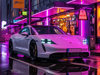 De plaat vangt het moment van anticipatie, waarin de Taycan lijkt te wachten om van de muur te springen en de weg te veroveren. Dit beeld is niet alleen een viering van Porsche's toewijding aan elektrische mobiliteit, maar ook een eerbetoon aan de tijdloze esthetiek en prestaties die Porsche heeft gedefinieerd. Het is niet zomaar een poster; het is een kunstwerk dat de geest van de moderne sportauto belichaamt.