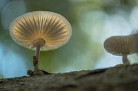 Over ‘Porseleinzwam (Oudemansiella mucida) op een boomstam in het bos’ van Moetwil en van Dijk - Fotografie