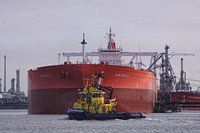 Patrouillevaartuig RPA 14 op het Calandkanaal ter hoogte van de 5e Petroleumhaven. De RPA 14 is een schip van het Rotterdamse Havenbedrijf en is o.a. bestemd voor incidentbestrijding. Het zeeschip Samail is een in Panama geregistreerde tanker voor ruwe aardolie. Het schip is 322 meter lang en 60 meter breed.