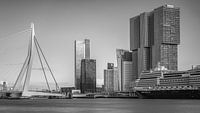 Tijdens een vroege avondwandeling langs de Maas viel mijn oog op dit indrukwekkende tafereel: de Kop van Zuid in volle glorie, vastgelegd in een panorama met lange sluitertijd. Het cruiseschip Rotterdam van de Holland America Line lag statig aangemeerd, omringd door de moderne architectuur van het Wilhelminapier. De Erasmusbrug verbindt…