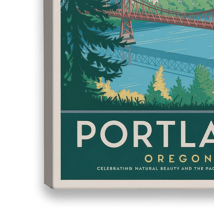 Koop dit landschapskunstwerk Portland, Oregon Vintage Reisposter van Poster Art Shop op canvas, aluminium dibond, (ingelijste) fotoprint, behang en ArtFrame, op maat geprint in Fine-Art kwaliteit.