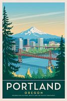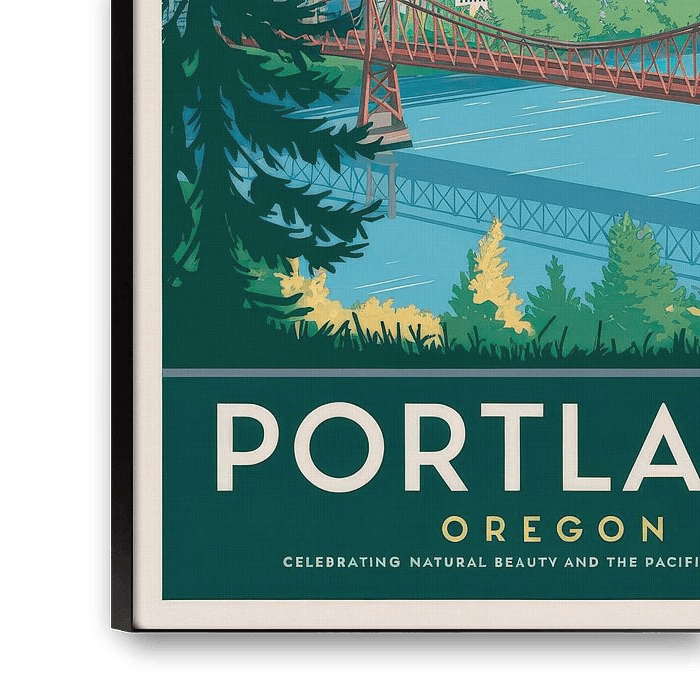 Hier ontvouwt zich een schilderachtig panorama van Portland, met majestueuze bergen op de achtergrond en levendige bomen op de voorgrond. De brug combineert stedelijkheid en natuur in harmonie. Perfect voor een woonkamer die een gevoel van avontuur en sereniteit uitstraalt!