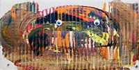 Abstracte acryl afbeelding van de o zo smakelijke Portland bruine krab. Hij is licht humoristisch, lichtvoetig. Maar hij zou goed staan op een café / keuken muur!
