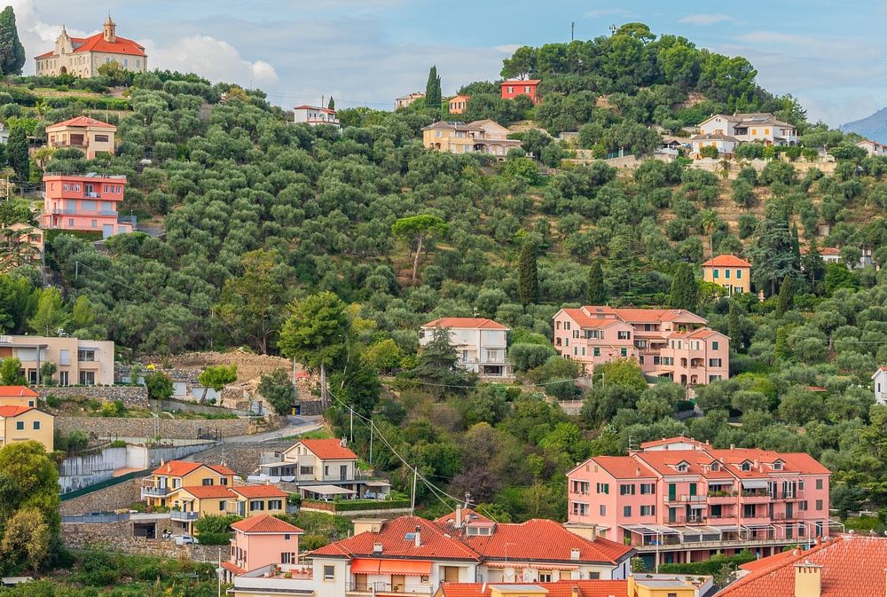 Landschap rond Porto Maurizio in Oneglia, een voormalige stad in Noord-Italië aan de Ligurische kust, die in 1923 met Porto Maurizio werd samengevoegd tot de gemeente Imperia.