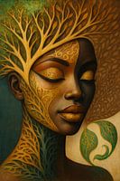 Diep in het mystieke woud woonde een vrouw, half mens, half plant. Haar naam was Flora, de betoverende botanische godin. Haar gezicht was een kunstwerk op zich, gesplitst tussen zwart en wit. Het symboliseerde de dualiteit van het leven, de balans tussen licht en donker.