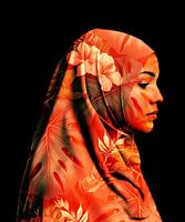 Digitaal vervaardigd portret van een prachtige gesluierde vrouw.