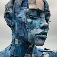 Dit kunstwerk is een ode aan de blauwe denim jeans het ultieme tijdloze kledingstuk, dit materiaal was de basis voor dit portret.