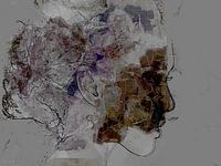 In het gezicht zijn donkerbruine kleuren verwerkt in vakjes en lijnen. In het haar en rest van het portret zijn vlekken te zien in paars en grijstinten met een zweem van donkerbruin erdoorheen. De donkerbruine kleur maakt het tot een eenheid.