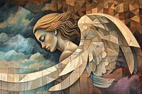 Details: engel, portret, vrouw, vleugels, geometrisch, modern, kunst, schilderij, figuur, serene